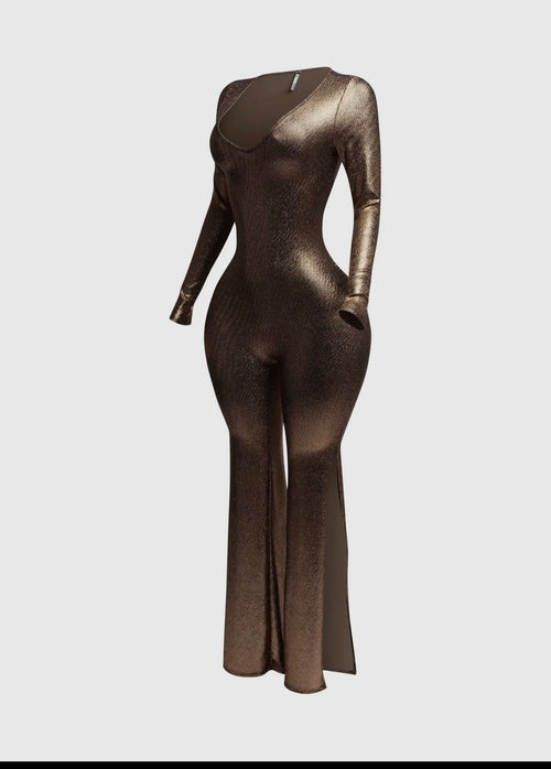 Shimmer Tie Back Jumpsuit (Brown)